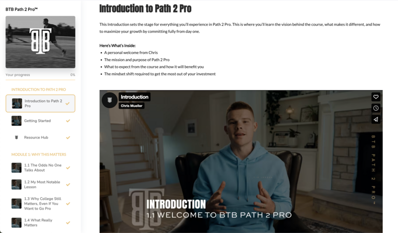 We built Path 2 Pro to speak their language. The lessons are short, real, and to the point, delivered by a relateable, former pro who’s walked the path they’re trying to follow. This isn’t a course that collects dust, it’s a challenge they’ll want to rise to.
